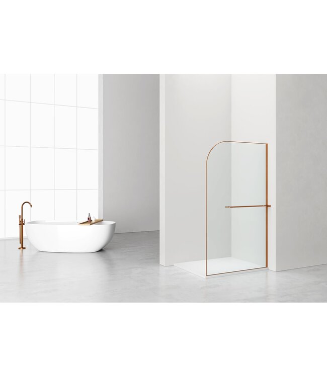 Een badkamer met karakter ontstaat niet door toeval. De Aloni Curvy inloopdouche in geborsteld koper voegt warmte en persoonlijkheid toe zonder de ruimte te overheersen. De gebogen vorm verzacht het geheel, terwijl de koperkleur een subtiele, bijna ambachtelijke uitstraling geeft die met de jaren alleen maar mooier wordt.