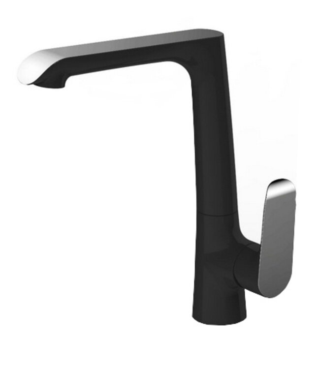 De Wiesbaden Tarma kraan is vervaardigd uit hoogwaardig messing met een gepolijste en gecoate afwerking, wat niet alleen een luxe uitstraling garandeert maar ook duurzaamheid bevordert. Het strakke zwarte design met chromen accenten voegt een eigentijdse touch toe aan je keukeninterieur.