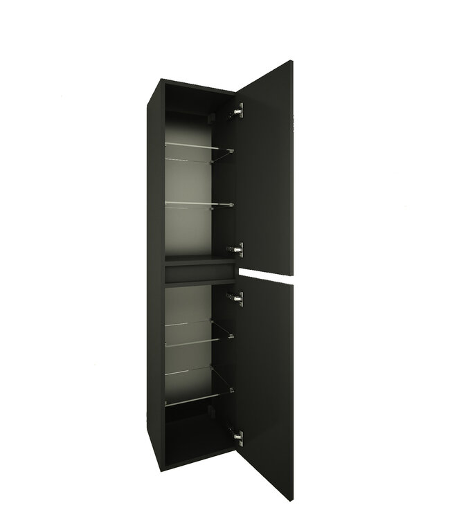 De kolomkast is voorzien van twee glazen leggers, verdeeld over twee deuren die zowel links als rechts te monteren zijn. Hierdoor is de kast moeiteloos aan te passen aan jouw badkamerindeling. De kolomkast badkamermeubel wordt zwevend gemonteerd, inclusief meegeleverd bevestigingsmateriaal. Dit zorgt voor een ruimtelijk effect en een moderne afwerking.