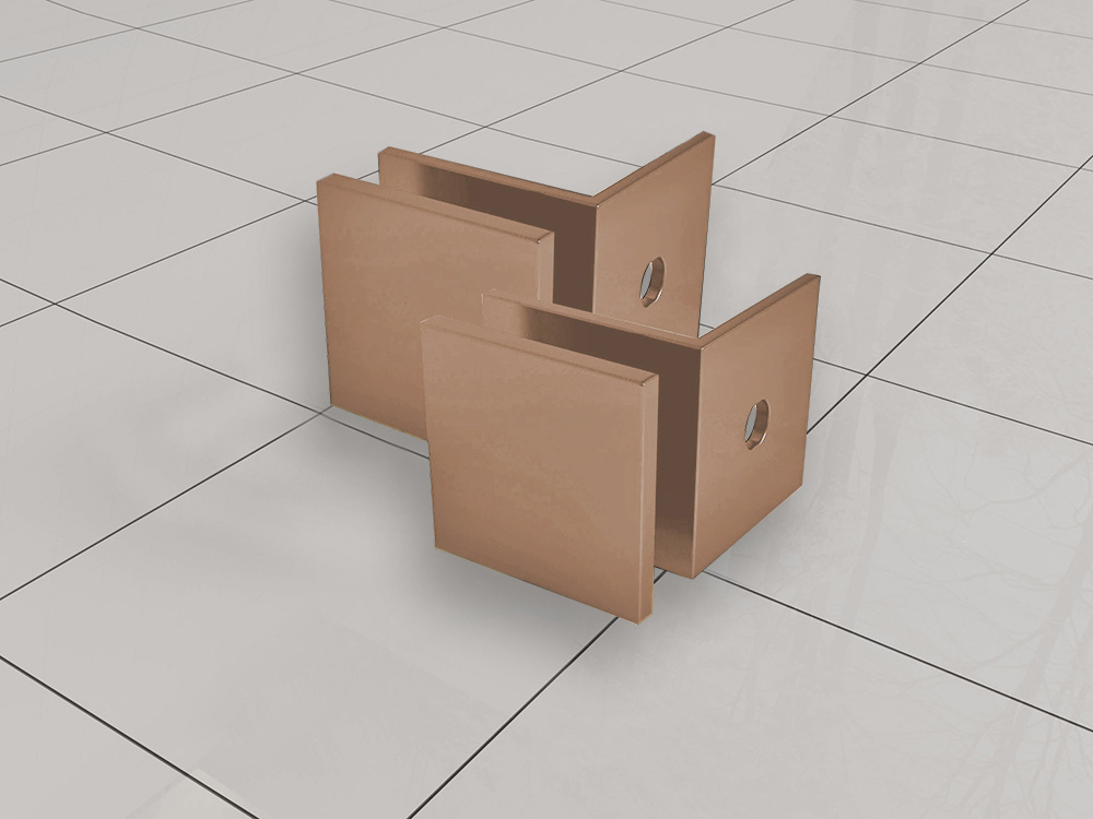 Geef jouw profielloze inloopdouche een warme en luxueuze uitstraling met deze hoogwaardige Less glaskoppelingset in stijlvol geborsteld koper. Speciaal ontworpen voor Wiesbaden Less douchewanden, bevat deze set twee robuuste RVS-beugels voor een directe en veilige bevestiging van de glaswand aan de muur – volledig zonder storende profielen of zichtbare schroeven.
