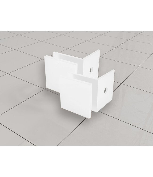 Deze hoogwaardige glaskoppelingset in mat wit is speciaal ontworpen voor het monteren van Wiesbaden Less profielloze douchewanden. De set bestaat uit twee stevige muurbeugels waarmee je een glazen douchewand strak en veilig aan de wand bevestigt. Dankzij de subtiele en moderne mat witte afwerking past deze set perfect in een minimalistisch of eigentijds badkamerontwerp.
