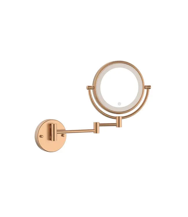 Ontdek de perfecte combinatie van stijl, functionaliteit en luxe met onze Make Up Spiegel Geborsteld Koper 5x Zoom met LED-verlichting Touch. Ideaal voor jouw badkamer, slaapkamer of zelfs voor hoogwaardige hotels en wellnessruimtes. Deze spiegel biedt alles wat je nodig hebt voor nauwkeurig make-up aanbrengen, scheren of verzorging van het gezicht.