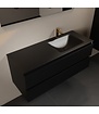 Transformeer je badkamer met het stijlvolle Mondiaz AIVY badkamermeubel. Dit meubel, uitgevoerd in mat zwart melamine, straalt moderne elegantie uit en biedt praktische opbergruimte dankzij de twee softclose lades. De breedte van 120 cm maakt het meubel perfect voor grotere badkamers, terwijl de solid surface wastafel in mat zwart met een spoelbak rechts een exclusieve uitstraling geeft.