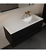 Breng stijl en comfort naar je badkamer met het Mondiaz AIVY badkamermeubel van 120 cm breed. Dit moderne meubel combineert een strakke matzwarte melamine onderkast met een hoogwaardige Talc matwitte Solid Surface wastafel. Dankzij de rechte wasbak aan de rechterzijde biedt dit badkamermeubel een elegante oplossing voor zowel kleine als grotere badkamers.