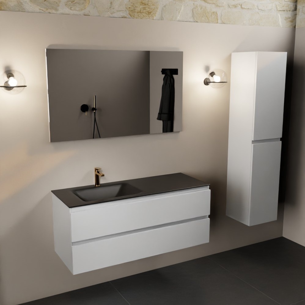 Badkamermeubel 120cm AIVY Talc met Mat Zwarte Wastafel wasbak Links