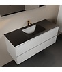 Het Mondiaz Badkamermeubel 120cm AIVY combineert stijl en functionaliteit in uw badkamer. De onderkast, uitgevoerd in Talc Mat Wit melamine met een voelbare houtstructuur, straalt verfijning uit. Met twee ruime softclose lades biedt deze onderkast voldoende opbergruimte voor al uw badkamerbenodigdheden.
