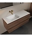 De wastafel is ontworpen met een linkse positie van de wasbak en biedt twee royale spoelbakken. Dankzij het minimalistische ontwerp zonder kraangaten is dit badkamermeubel perfect geschikt voor een moderne inrichting. Met een breedte van 120 cm en een diepte van 45 cm past dit badkamermeubel perfect in middelgrote tot ruime badkamers.