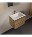De bijbehorende wastafel is gemaakt van solid surface en uitgevoerd in de subtiele kleur Talc. Met een breedte van 61 cm en een diepte van 46 cm biedt de wastafel een royale spoelbak van 47 cm, perfect voor dagelijks gebruik. Dankzij het centrale ontwerp met één kraangat is dit badkamermeubel met wastafel een stijlvolle en veelzijdige toevoeging aan elke badkamer.