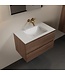 De wastafel heeft een centrale spoelbak zonder kraangat, wat perfect is voor een minimalistische uitstraling. De duurzame materialen van zowel de onderkast als de wastafel zorgen voor een lange levensduur en een onderhoudsvriendelijke afwerking. Dit badkamermeubel met wastafel is een stijlvolle keuze voor elke moderne badkamer.