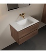 Creëer een stijlvolle en georganiseerde badkamer met het Mondiaz Badkamermeubel AIVY. Dit elegante meubel combineert een strakke wastafelonderkast in Mocha met een moderne wastafel van Solid Surface in mat wit. Met een breedte van 80 cm biedt de onderkast voldoende opbergruimte dankzij twee ruime softclose lades, ideaal voor al uw badkamerbenodigdheden.