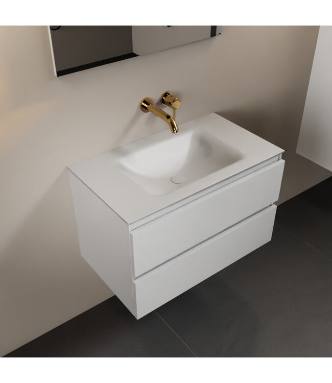Het Mondiaz Badkamermeubel AIVY combineert stijl en kwaliteit, perfect voor een moderne badkamer. De onderkast, uitgevoerd in talc mat wit melamine, biedt met zijn twee softclose lades voldoende opbergruimte voor al uw badkamerbenodigdheden. Met een breedte van 80 cm en een diepte van 45 cm past dit badkamermeubel in vrijwel iedere ruimte.