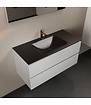 Geef je badkamer een luxe uitstraling met het Mondiaz Badkamermeubel AIVY. Deze set combineert een moderne wastafelonderkast in talc mat wit met een stijlvolle mat zwarte wastafel. Dankzij de softclose lades biedt het meubel niet alleen gebruiksgemak, maar ook een stille sluiting. De onderkast van 100 cm breed is gemaakt van duurzaam melamine en biedt voldoende opbergruimte voor al je badkamerbenodigdheden.