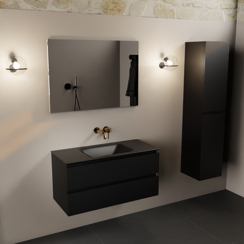 Mondiaz Badkamermeubel AIVY Urban Mat Zwart 100cm met Wastafel Mat Zwart kraangat 0