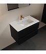 Creëer een stijlvolle en georganiseerde badkamer met het Mondiaz Badkamermeubel AIVY. Dit hoogwaardige badkamermeubel combineert een wastafelonderkast in Urban Mat Zwart met een elegante keramische wastafel in glanzend wit. Met zijn compacte afmetingen van 80 cm breed en 50 cm hoog biedt het meubel voldoende opbergruimte dankzij twee softclose-lades, ideaal voor een strakke en moderne badkamerindeling.