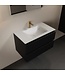 De bijgeleverde wastafel in Mat Wit is gemaakt van duurzaam Solid Surface en heeft een breedte van 81 cm. Met de centrale positie van de spoelbak en één kraangat biedt dit wastafelmeubel zowel stijl als comfort. Let op: kraan, sifon en afvoerplug zijn niet inbegrepen, zodat u deze geheel naar wens kunt kiezen.