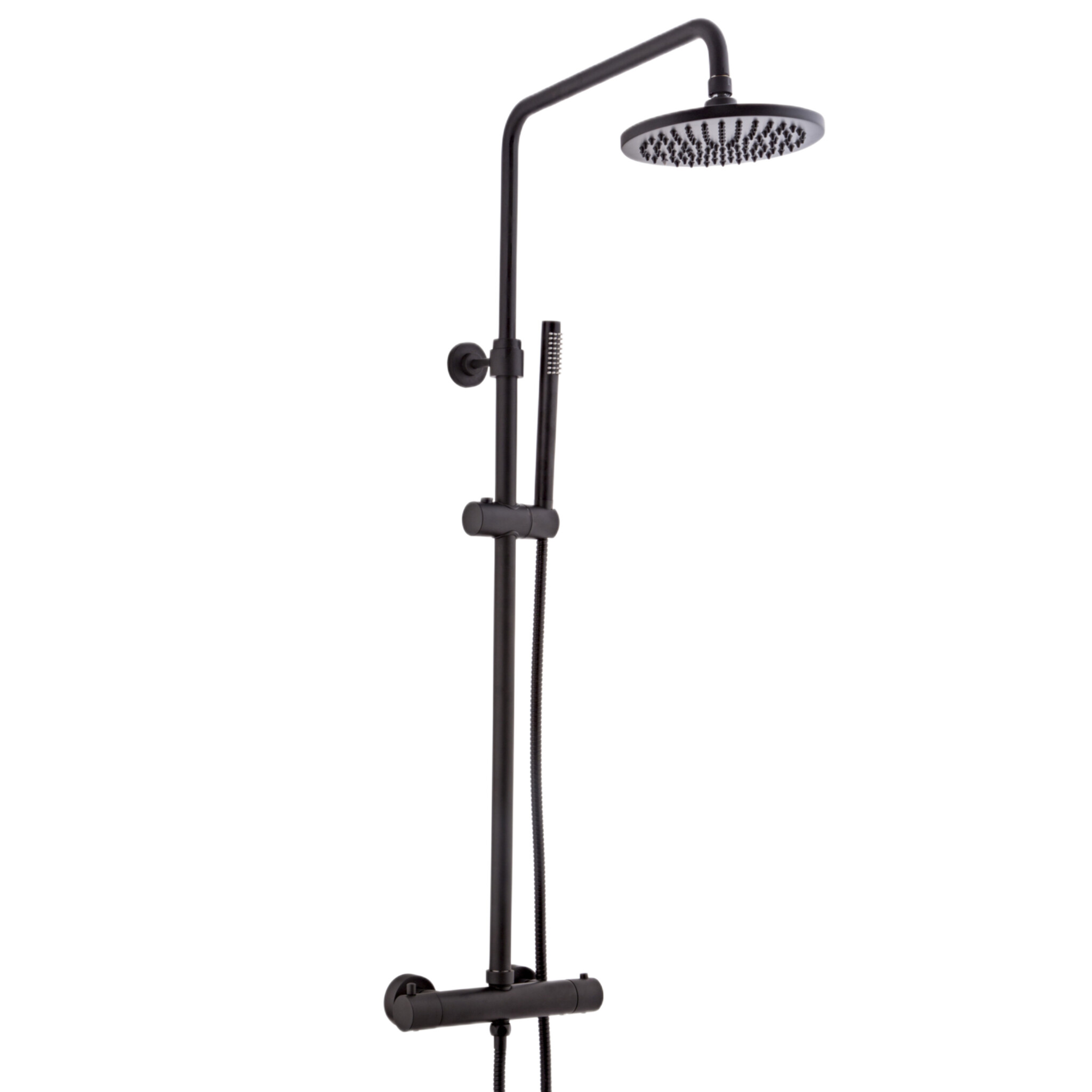 Opbouw Doucheset met thermostaatkraan Effeze Mat Zwart regendouche 25cm