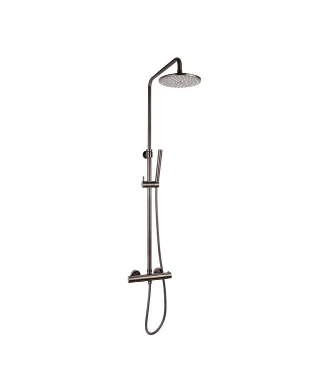 De Gun Metal kleur zorgt voor een unieke uitstraling en daarmee vormt de doucheset van SaniPro een eyecatcher in uw badkamer. Wat deze regendoucheset van SaniPro Donna extra bijzonder maakt is de keuze die u heeft om de Gun Metal kleur meerdere plekken terug te laten komen in uw badkamer. Koop een wastafelkraan inbouw, opbouw of een sifon set en geniet van uw stijlvolle badkamer. Deze complete SaniPro Donna Regendoucheset Gun Metal wordt op een speciale wijze geproduceerd waardoor de douche in deze unieke kleur geleverd kan worden. Hierdoor heeft de regendoucheset een bijzondere structuur waarbij tussen de losse onderdelen van de doucheset tintenverschillen kunnen voorkomen.
