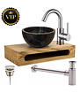 Het Houten Planchet is niet voorgeboord voor de afvoer of voor de kraan. Hierdoor kunt u afhankelijk van de situatie in uw toilet zelf bepalen of u de waskom links of rechts wilt plaatsen of juist in het midden van het houten planchet.