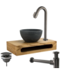 ✓ Eiken Planchet met Handdoekhouder ✓ Natuursteen waskom ✓ Kraan-sifon en waste combinatie ✓ Messing materiaal ✓ Compleet set Lees meer.
