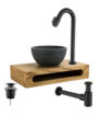 ✓ Eiken Planchet met Handdoekhouder ✓ Natuursteen waskom ✓ Kraan-sifon en waste combinatie ✓ Messing materiaal ✓ Compleet set Lees meer.