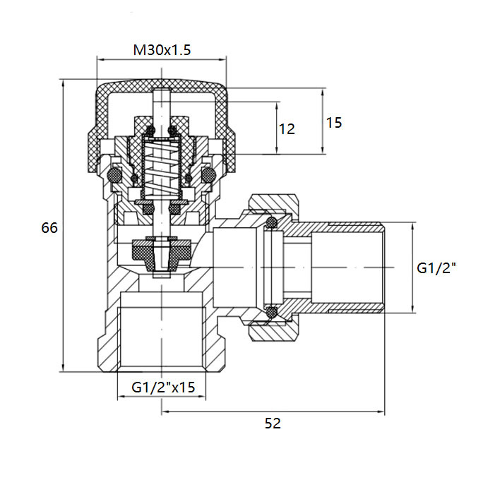 Thermostatisch radiatorventiel 1/2"x15mm haaks