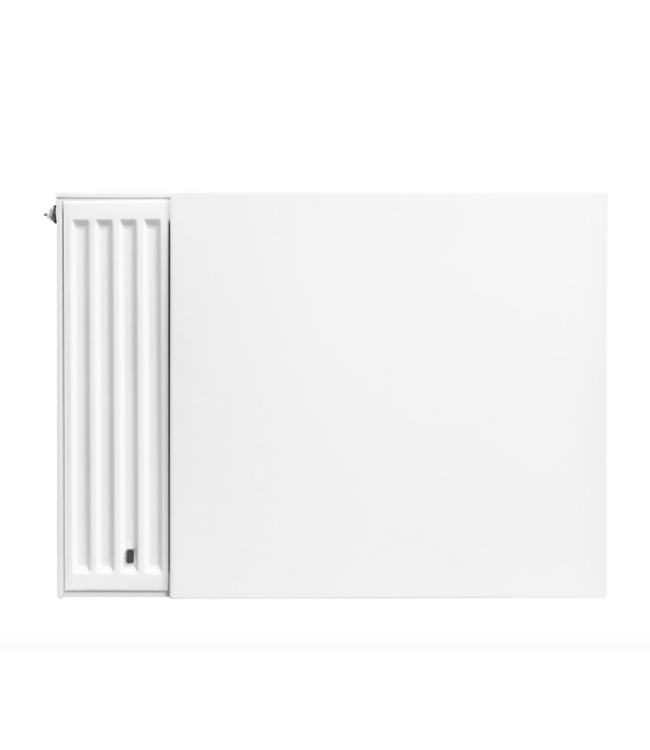 De ombouw is uitgevoerd in een tijdloos wit, RAL-9016, wat zich aanpast aan diverse interieurstijlen. Het minimalistische design voegt een vleugje elegantie toe aan je ruimte, terwijl de radiator toch discreet zijn werk doet.