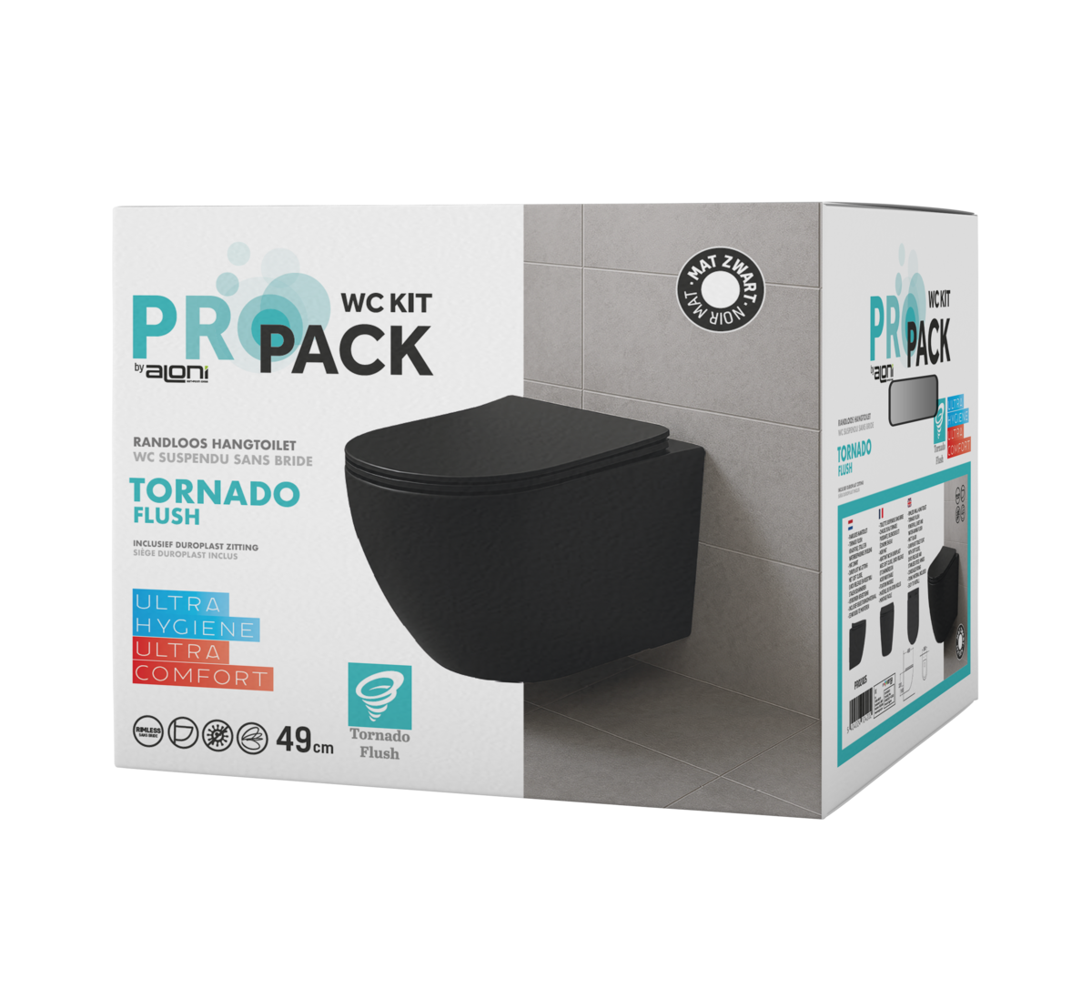 Het Aloni Pro-Pack is dé oplossing voor iedere badkamer. Met zijn compacte diepte van slechts 49 cm past dit hangend toilet moeiteloos in kleinere ruimte