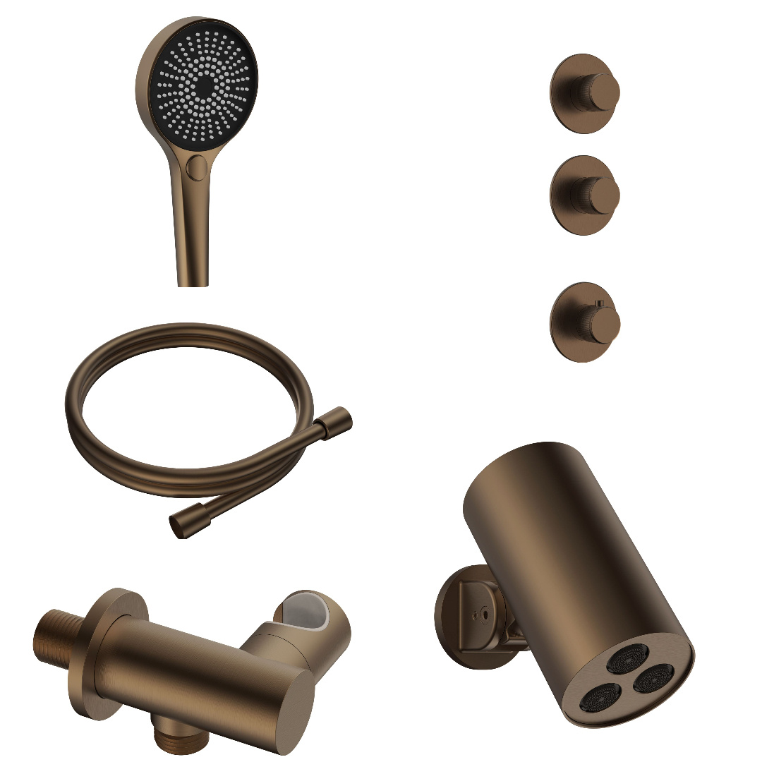 Regendoucheset inbouw Stria Cilinder 2-weg Bruin Brons