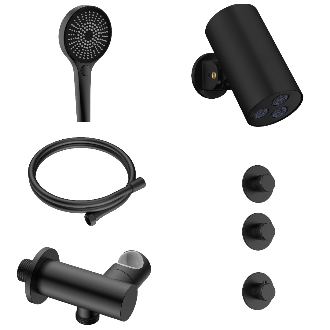 Regendoucheset inbouw Stria Cilinder 2-weg Mat Zwart
