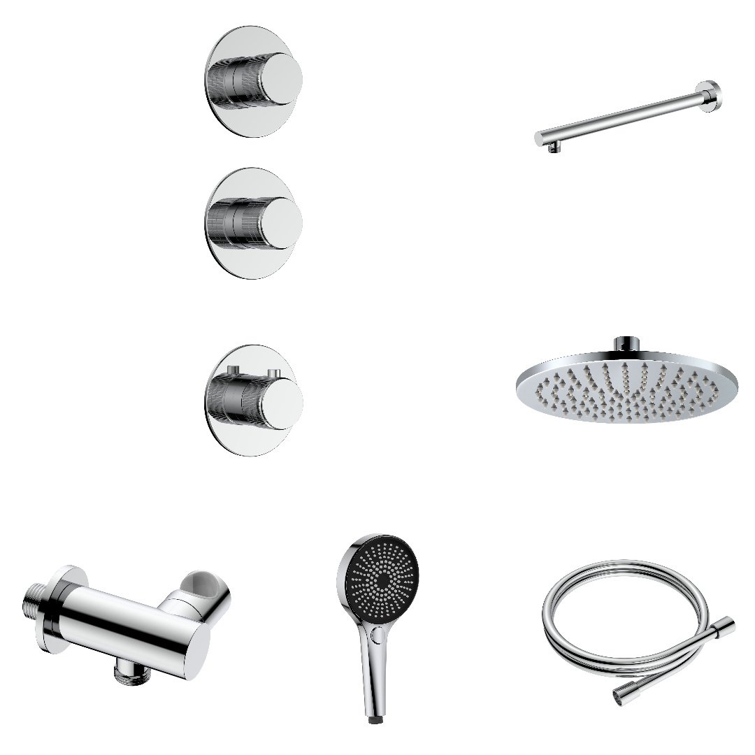 Dankzij het slimme inbouwsysteem verdwijnen leidingen volledig uit het zicht. Hierdoor ontstaat een opgeruimde, hotel-waardige uitstraling waar rust en ruimte centraal staan. De fijn geribbelde bedieningsknoppen zorgen voor optimale grip en benadrukken het stijlvolle, premium karakter van deze inbouw regendoucheset.