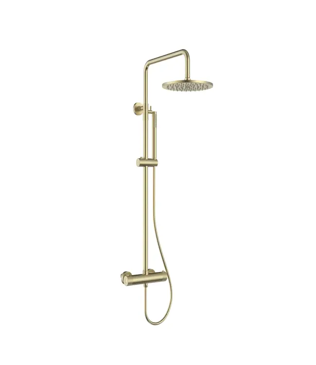 De regendoucheset is uitgevoerd in hoogwaardig RVS en afgewerkt met een geborstelde messing kleur, wat zorgt voor een warme en exclusieve uitstraling. Naast deze uitvoering is de doucheset met thermostaatkraan ook beschikbaar in andere stijlvolle kleuren zoals chroom, zwart, gunmetal, koper of klassiek RVS.