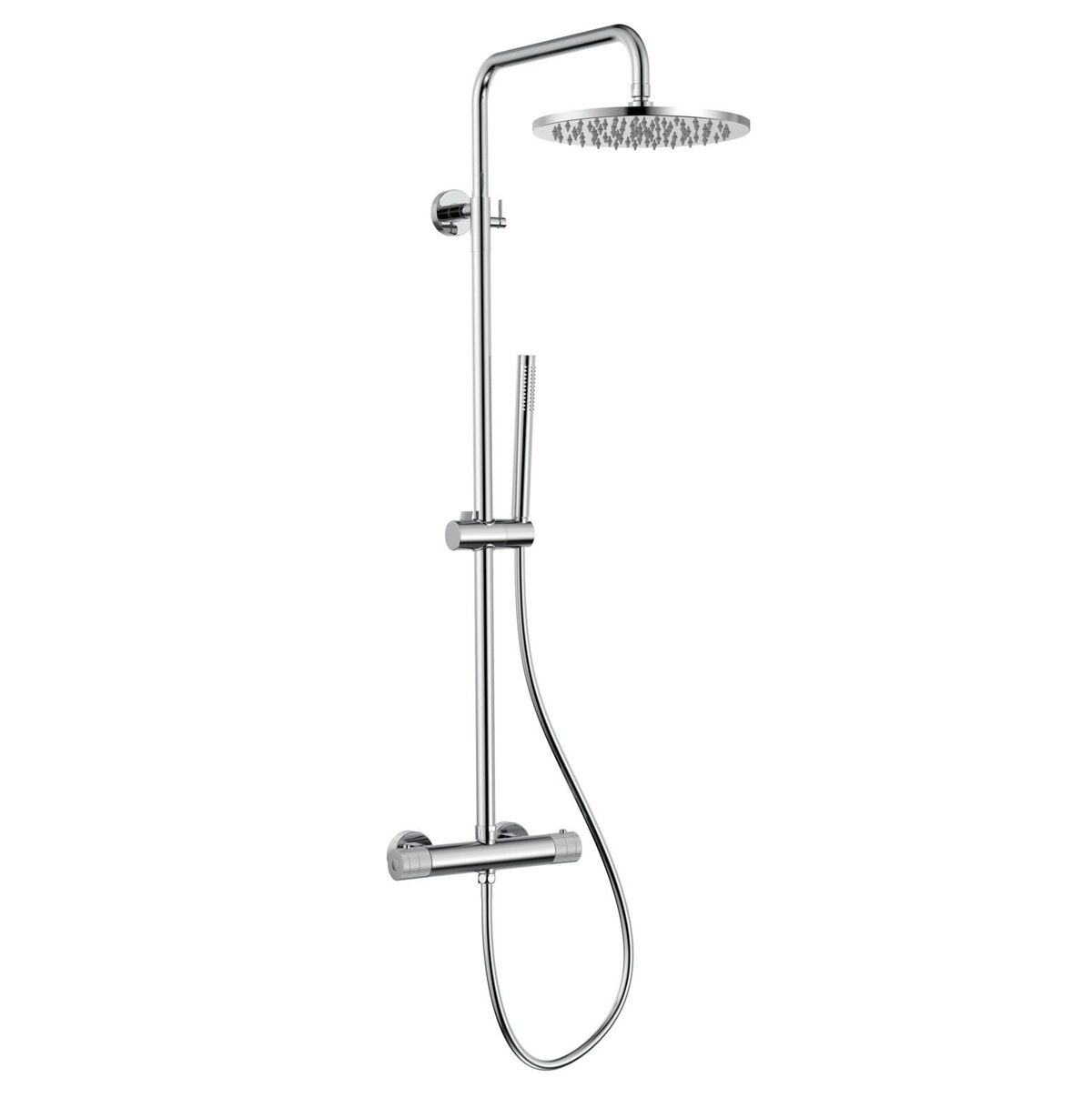 RVS materiaal ✓ 30cm Regendouchekop ✓ Hoogte verstelbaar 844–1194 mm ✓ 15 HoH ✓ Draaiknoppen met luxe ribbel motief ✓ Thermostaatkraan met Temperatuurblokkering (38°C) ✓ Cool- Touch functie