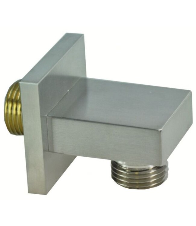 Wandaansluitbocht Vierkant 1/2" Geborsteld Staal - 29.4802: Op deze strakke doucheaansluiting aan de wand van Wiesbaden sluit je je doucheslang aan. Kies daarnaast nog een mooie handdouche en handdouchehouder uit het Wiesbaden Rombo assortiment en je hebt een handdouche set compleet. Doucheslangen, handdouches en handdouchehouders kun je los bij onze webshop bestellen. Deze Caral doucheslangaansluiting heeft een Geborsteld Staal - 29.4802 kleur en moet aan de muur bevestigd worden.