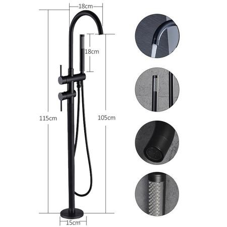 Technsiche informatie over Badkraan Vrijstaand Mat Zwart Rond