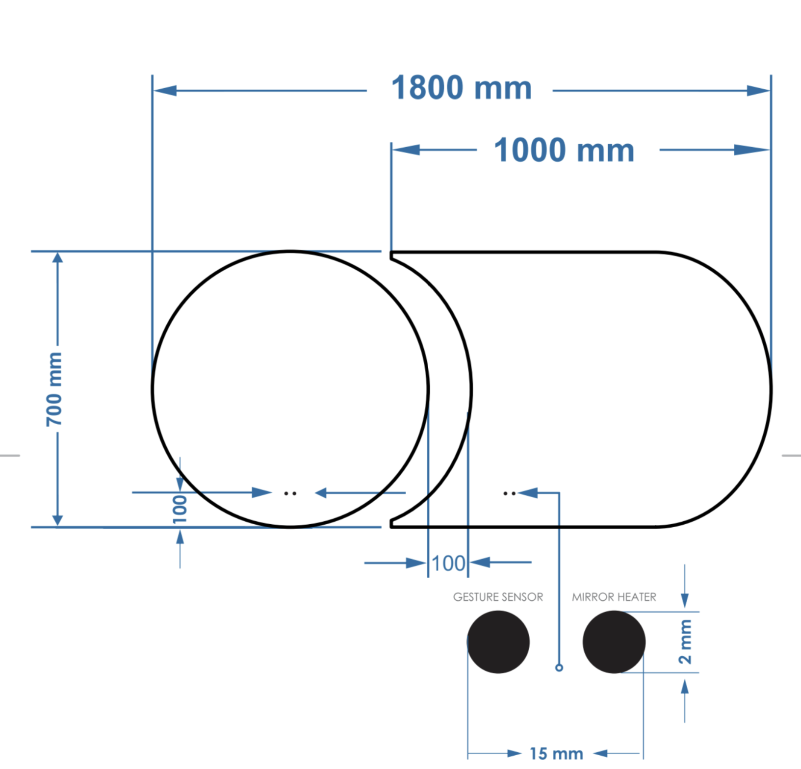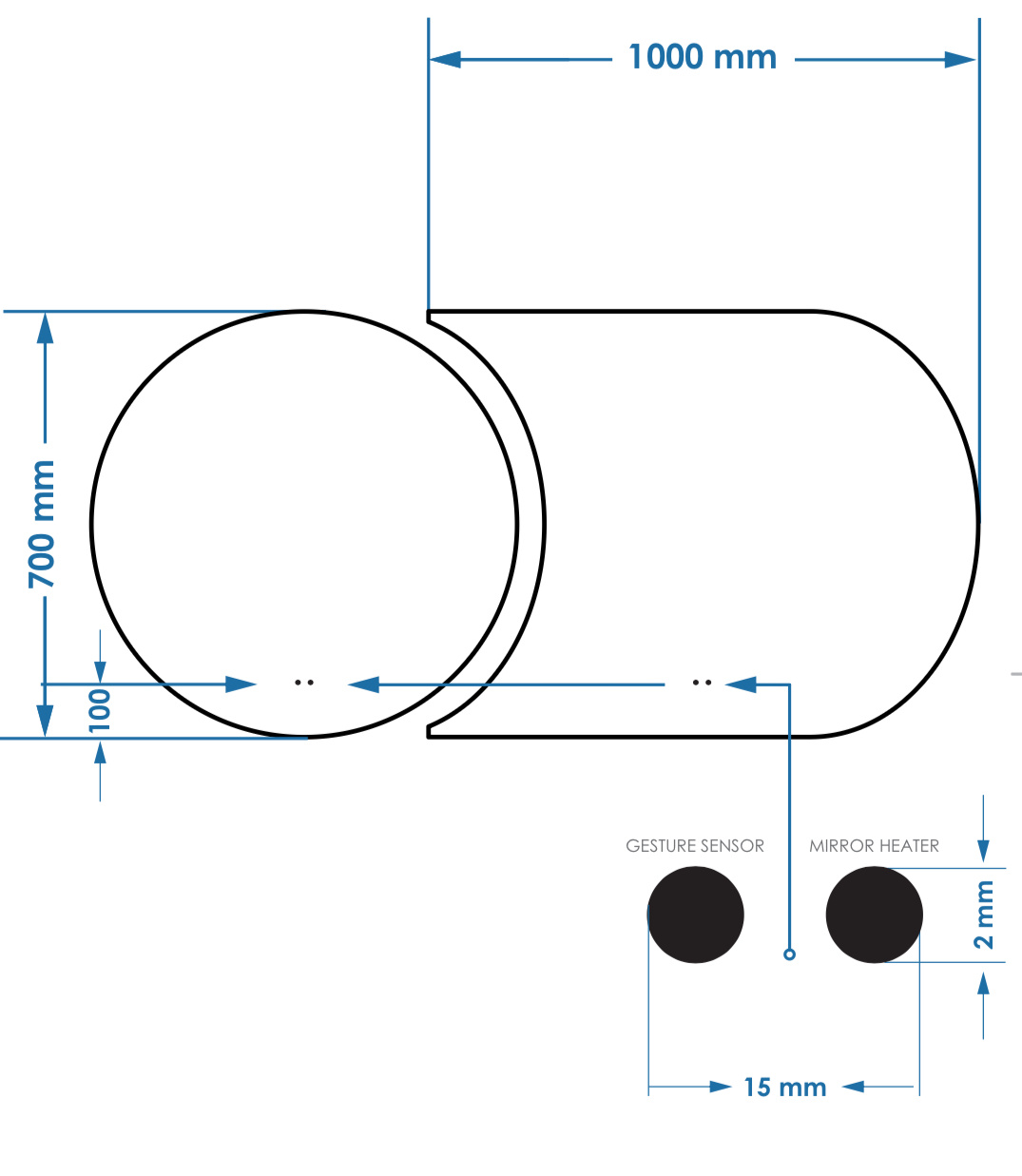Spiegel Gliss Eris 70 + 100x70 cm 2-delig - sensor bediening met dimbaar licht - Spiegelverwarming