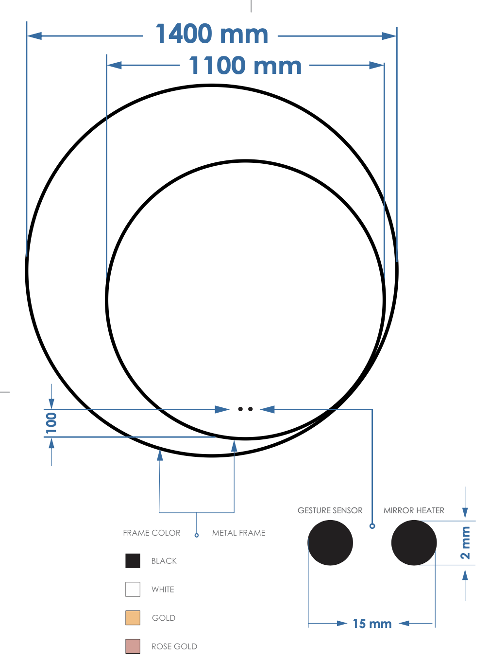 3 kleuren Led-verlichting geleidelijk 3000K tot 6500K ✓ Dimbaar verlichting ✓ Geïntegreerde Spiegelverwarming ✓ Bediening via sensoren ✓ Verlichting achter rondom ✓ A-Kwaliteit spiegelglas