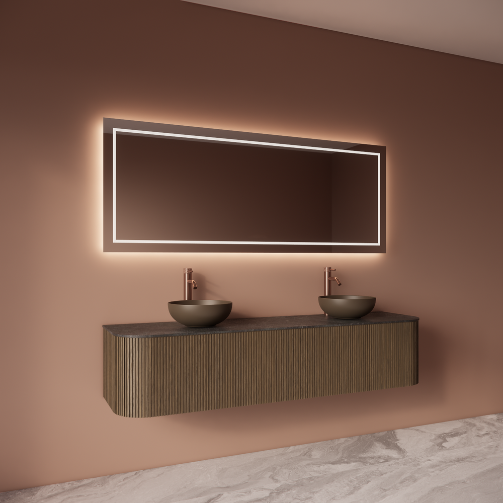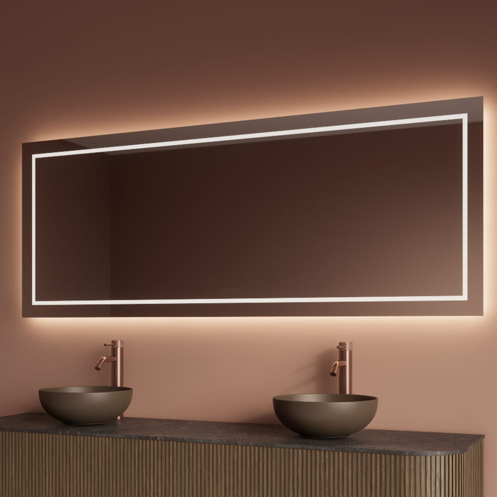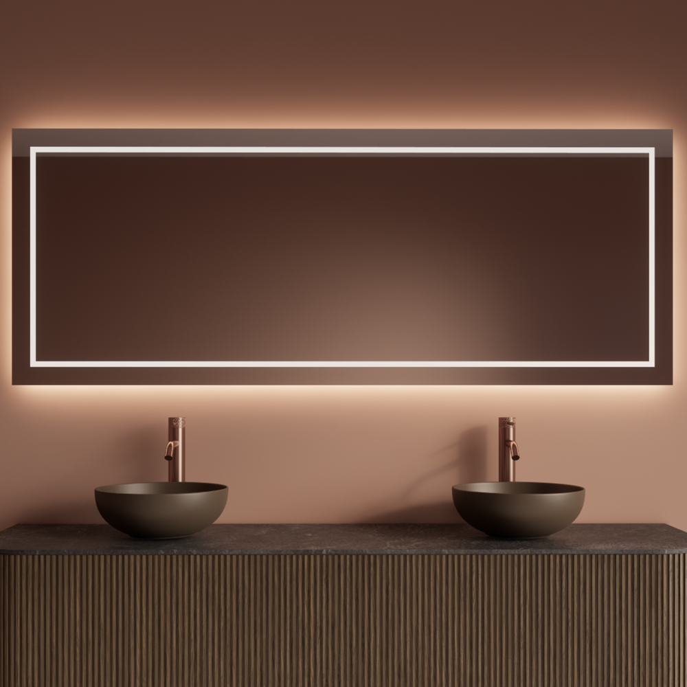 De rechthoekige spiegel zonder profiel heeft een elegante uitstraling die past in iedere badkamerstijl. Dankzij de indirecte LED-verlichting aan de achterzijde ontstaat er een warme sfeer, terwijl de front lichtstrook rondom zorgt voor extra helderheid tijdens het scheren of opmaken.