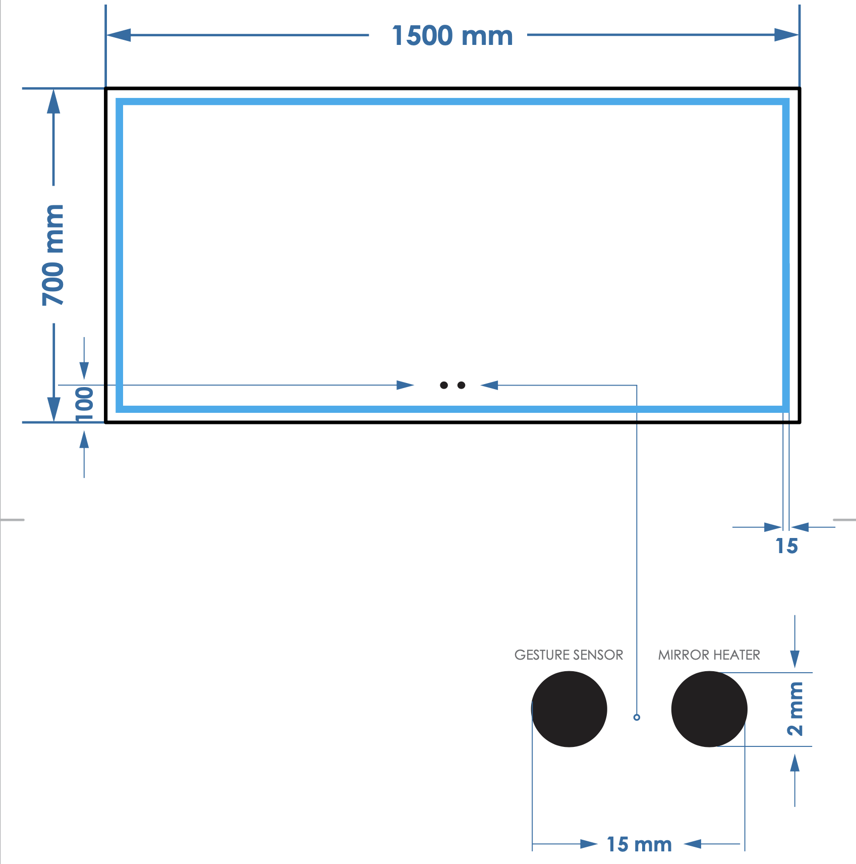 Spiegel Gliss Lenus Rechthoek 150cm sensor bediening met dimbaar licht - Spiegelverwarming