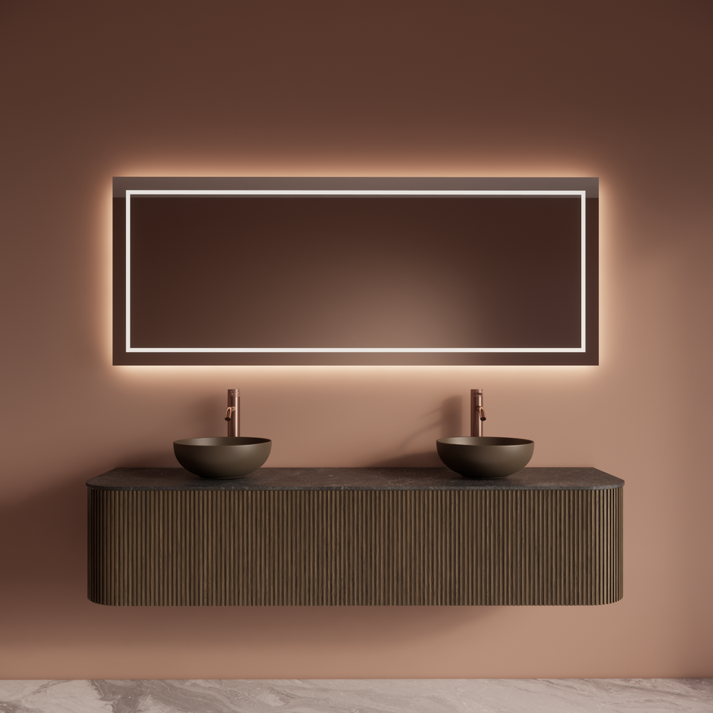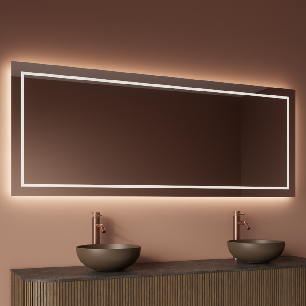 3 kleuren Led-verlichting geleidelijk 3000K tot 6500K ✓ Dimbaar verlichting ✓ Geïntegreerde Spiegelverwarming ✓ Bediening via sensoren ✓ Verlichting achter rondom met front strook ✓ A-Kwaliteit spiegelglas