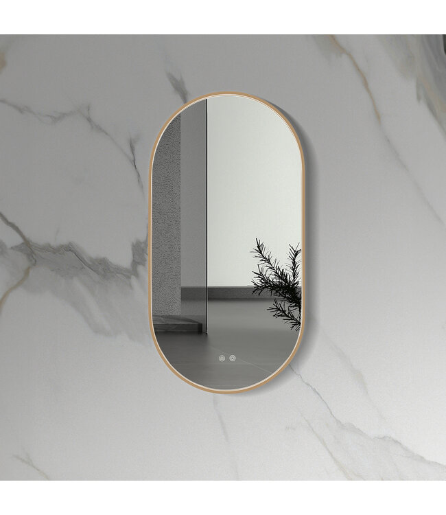 Op zoek naar de perfecte spiegel voor jouw badkamer? De Spiegel Ovaal⎢Aloni 50x100cm Geborsteld koper is de ultieme keuze voor stijl en comfort. Deze luxe badkamerspiegel combineert elegantie met slimme technologie. De ovale vorm voegt een tijdloze charme toe, terwijl de geborstelde koperafwerking een warme, moderne uitstraling geeft.