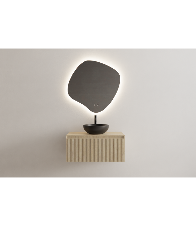 Dit badkamermeubel met ribbelfront creëert een verfijnde uitstraling, terwijl de aandacht voor detail en functionaliteit het onderscheidt. Het reliëf voegt een unieke dimensie toe aan jouw badkamer, waardoor het een ware eyecatcher wordt.