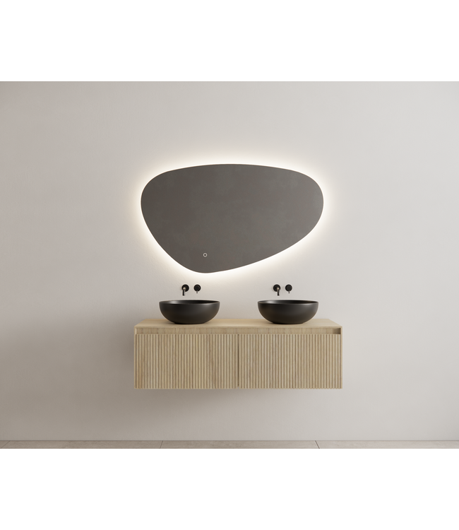 De twee lades, voorzien van metalen ladegeleiders van BLUM, garanderen soepele bewegingen en een geruisloze sluiting. De slimme indeling zonder sifon uitsparing creëert 1/3 meer ruimte in de lade, waardoor je moeiteloos al je badkamerbenodigdheden kunt opbergen.