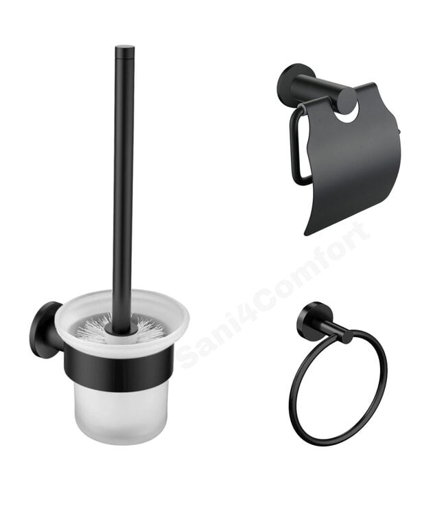 Toilet Accessoires Set Rondo Mat Zwart Toiletborstelhouder Toiletrolhouder en Handdoekring