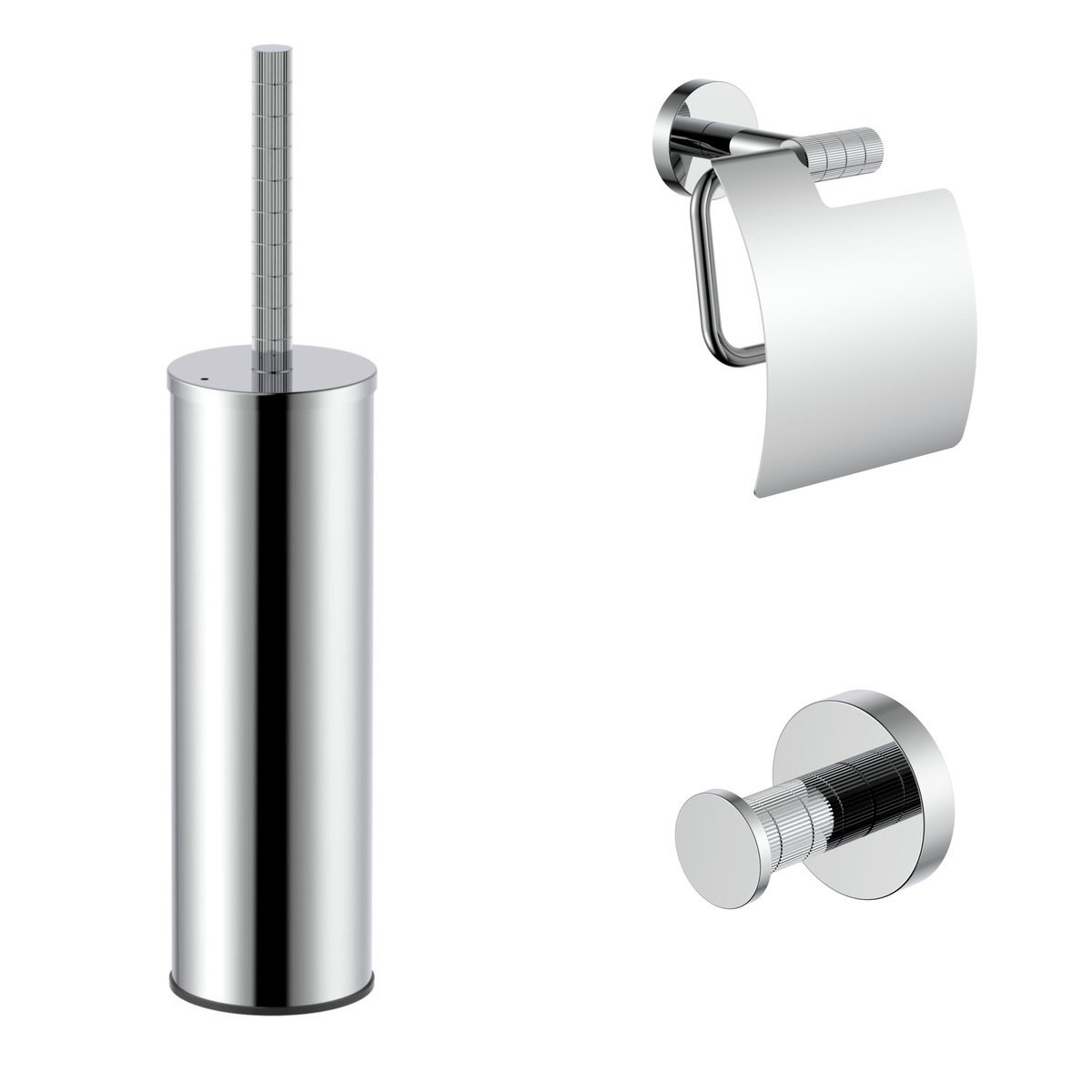 Toilet Accessoires Set Stria Chroom - Toiletborstelhouder + Toiletrolhouder + Handdoekhaak