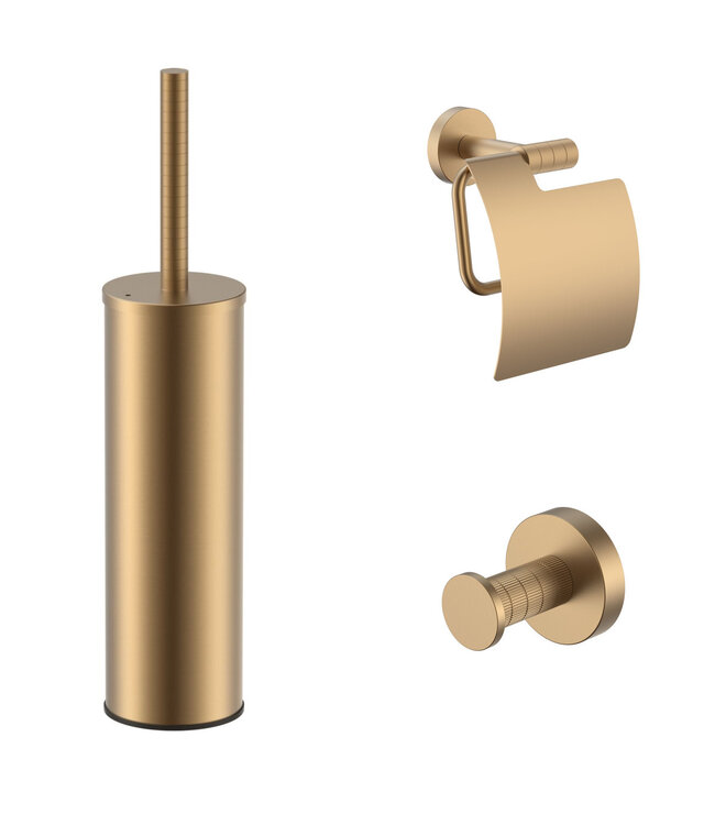Creëer een warme, stijlvolle badkamer of toilet met deze complete Toilet Accessoires Set in Mat Bruin Brons uit de Aloni STRIA collectie. Deze trendy kleur – ook bekend als brushed bronze of mat brons – geeft elke ruimte een luxueuze, eigentijdse uitstraling. Dankzij de PVD-coating is de set niet alleen elegant, maar ook extreem duurzaam en eenvoudig te onderhouden.