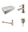 De Fonteinset Rhea Rechthoek Rechts is een complete fonteinset uit de Diamond Line collectie. Naast de glans witte toiletfontein van keramiek ontvangt u ook een toiletkraan van geborsteld staal een lage clickwaste afvoerplug met RVS look en een lage sifon met RVS look.