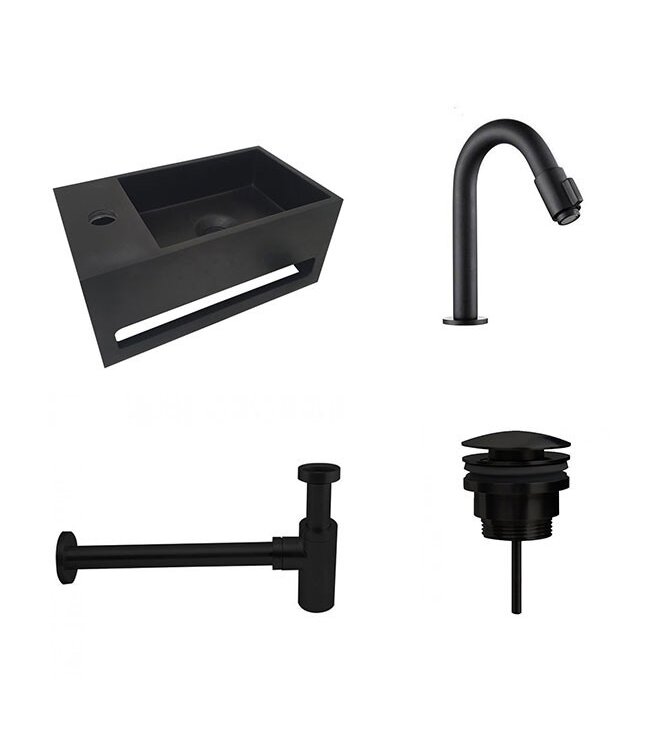De mat zwarte Fonteinset Sima Solid Surface Links heeft een unieke uitstraling en zal zeker opvallen in uw toiletruimte of badkamer. Het komt steeds vaker voor dat mat zwart wordt gebruikt in het interieur. Mat zwart straalt dan ook luxe uit en ziet er erg modern uit. Met deze fonteinset haalt u ongetwijfeld een eyecatcher in uw toiletruimte of badkamer. Creëer een geheel door de mat zwarte fonteinset te combineren met mat zwarte accessoires.