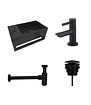 Fonteinset Sima Solid Surface Links is een mat zwarte toiletfontein met handdoekhouder. Deze praktische fonteinset wordt compleet geleverd zodat u meteen alle benodigdheden in één keer in huis heeft. U krijgt een toiletfontein met geïntegreerde handdoekhouder een toiletkraan met hendel bediening een clickwaste en een sifon. Deze moderne toiletfontein komt uit de Diamond Line collectie.
