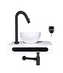 SaniPro Parro Mini Toilet Fonteinset met zwart beslagis een trendy en stijlvol Fonteintje in het toilet. Het Planchet en de waskom is gemaakt van het trendy materiaal Solid Surface en perfect gecombineerd met de zwarte accessoires. De waskom is ook van Solid Surface en is hierdoor een Luxe en duurzaam materiaal voor uw toilet. De Hygensiche Mat Witte kleur van de waskom combineert uitstekend met de Zwarte toiletkraan Cinci met dehandige draaikop bediening.