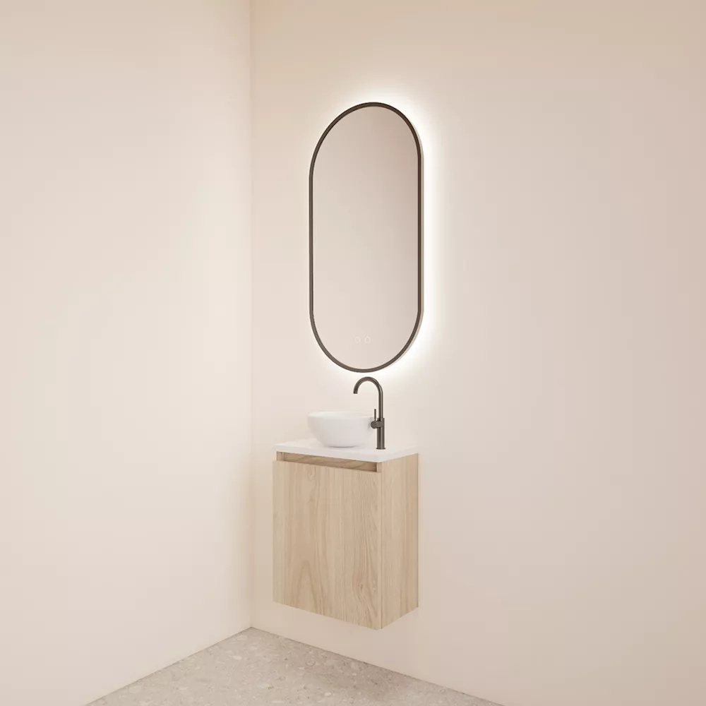 Het bijgeleverde zwarte toppaneel creëert een krachtig contrast en maakt dit meubel een echte eyecatcher. Wil je jouw toilet verder personaliseren? Combineer het meubel dan met een waskom en kraan naar keuze.